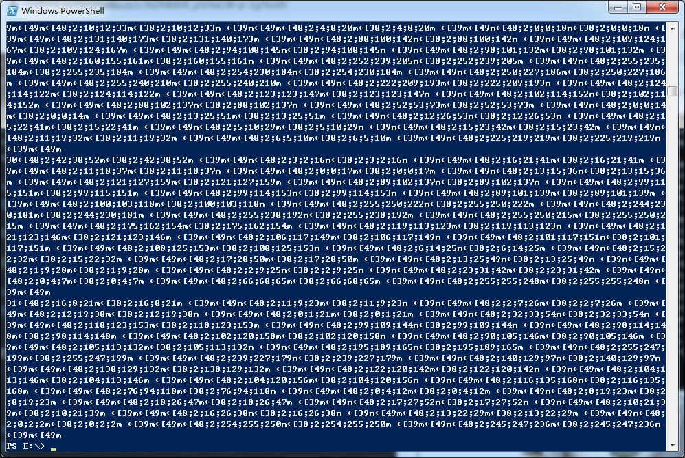 当然,也不是所有的控制台软件都是支持 RGB888 彩色的,比如文章开头的小黄人图片如果在 windows 的 cmd 或者 powershell 看起来就是这样: